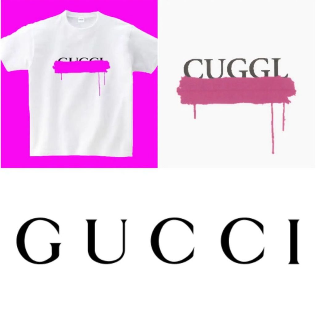 Nobuaki Kurokawa, an entrepreneur from Osaka, registered a trademark for the name “CUGGL”. The firm started producing T-shirts with its registered mark partially hidden, giving the impression that the Gucci trademark was redacted using hot pink paint.